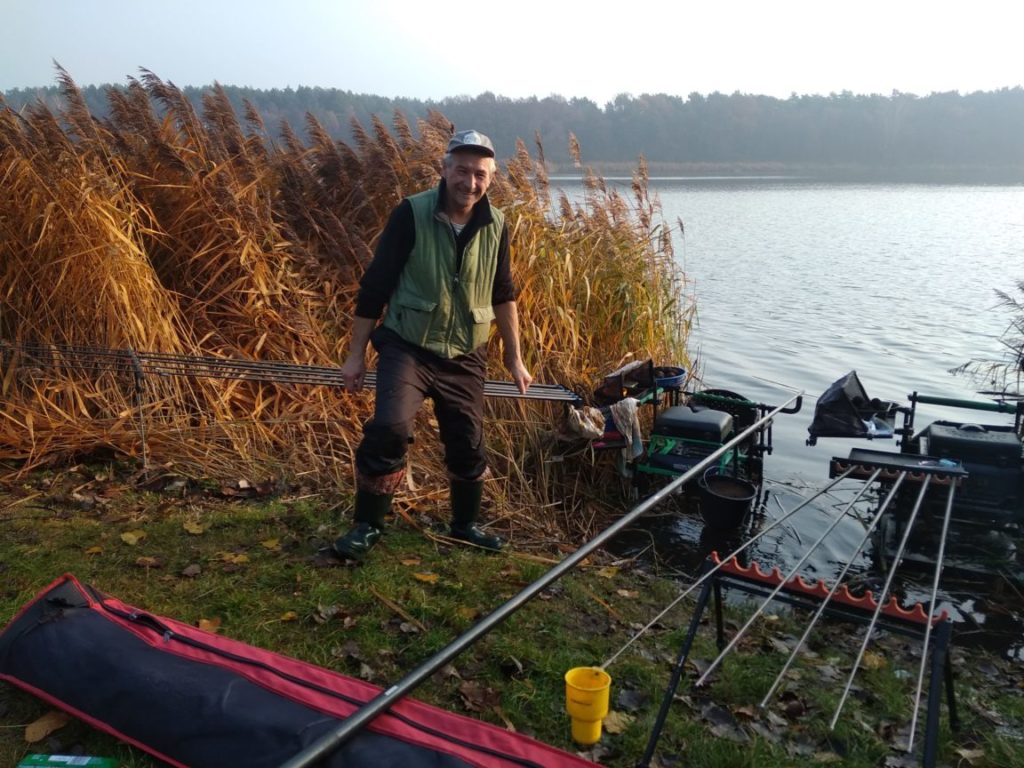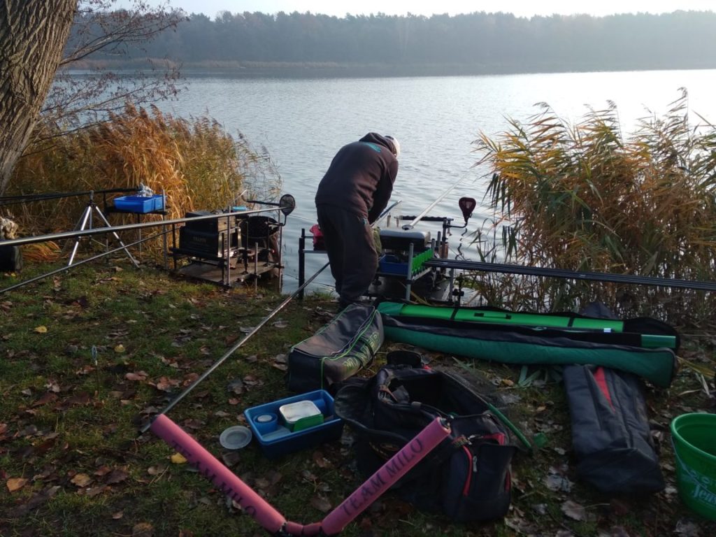Kolejne zawody w Rogoźnie. Tym razem wyjątkowa okazja – 100-lecie Odzyskania Niepodległości. Zawody parami, w sektorach tyczkowym (między innymi Radek z Markiem, Józef z Heniem, ja z Jankiem), razem 18 par, oraz sektory baciarzy, 30 par – czyli jak łtwo policzyć niemal 100 ludzi. Pogoda dopisała, ryby w sumie też. Zajęliśmy z Jankiem 2 miejsce w sektorze tyczek ( 4 w calcy zawodach) ustąpując tylko kolegom z otworka o 90g. U baciarzy wagi nieco niższe, wygrało chyna coś koło 10600g. Gryzły głównie płoteczki, kilka krąpików i 4 małe leszczyki. Oczywiście sporo okonka. Zanęty trochę zostało, jutro wolne więc jakby co jestem na zalewie