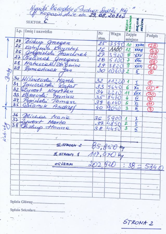 Bogdan na drugim miejscu 7820 - zaledwie 140g mniej ode mnie! Ojj blisko!