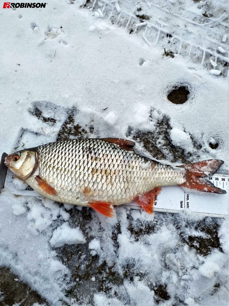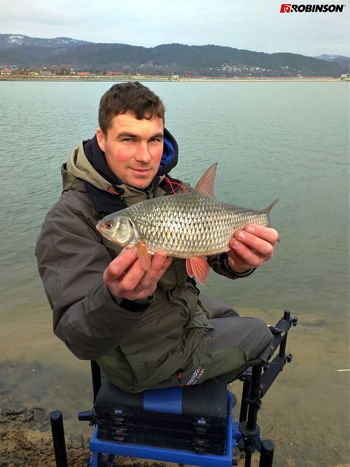 Marcin ponarzekał, że w ledwo rozpoczętym sezonie 2020 jeszcze nie osiągnął magicznych 40 cm… Istotnie ma na co narzekać. Złowionym przez niego płociom naprawdę niewiele brakuje.Waleczne, grube, zimowe piękności na feeder. Pora roku do wizyt nad wodą nie zachęca, więc tym bardziej gratulujemy! W koszyczku nasza nowość na rok 2020 – zanęta MVDE G5 SPECJAL